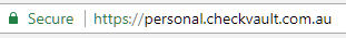 All services from CheckVault will be delivered under the checkvault.com.au domain. To ensure you are securely engaging with our service, always look at the address bar on your browser to see if it has a Green https in front of it and that the address always looks something like https://< app,personal,www etc. >.checkvault.com.au/< additional text >. See example provided below –